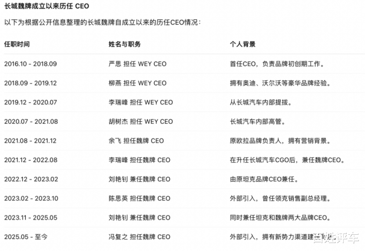但是他在“创始人意志主导+战略焦虑”这一特殊治理模式下,始终存在水土不服的情况,最终难逃“魏牌高管短命”的魔咒。